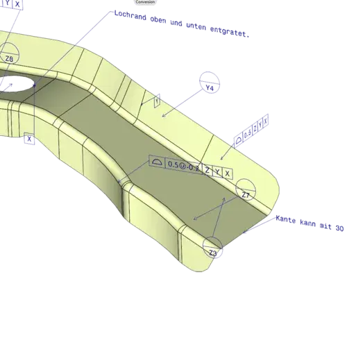 3D Evolution支持转换完整的语义化PMI(产品制造信息)、FTA(功能公差标注)、注释,以及附加在3D模型上的元数据和属性。