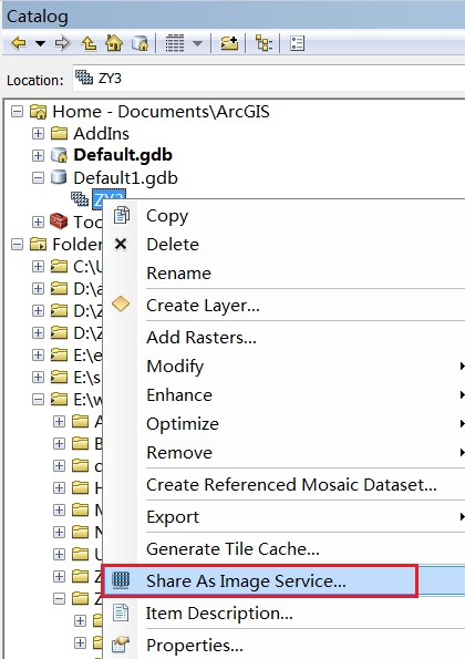 (3) 右键镶嵌数据集或栅格产品,将其发布为影像服务;