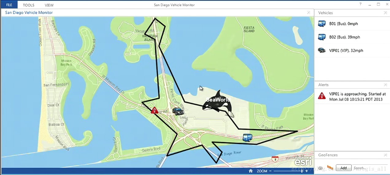 一旦VIP车辆进入地理围栏,就进行提醒,并发送手机短信或者邮件等等。