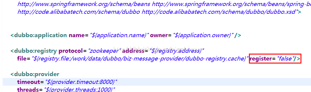 <dubbo:registry address="zookeeper://10.x.x.x:2181" group="dubbo" id="myjhd_id" register="false"/>