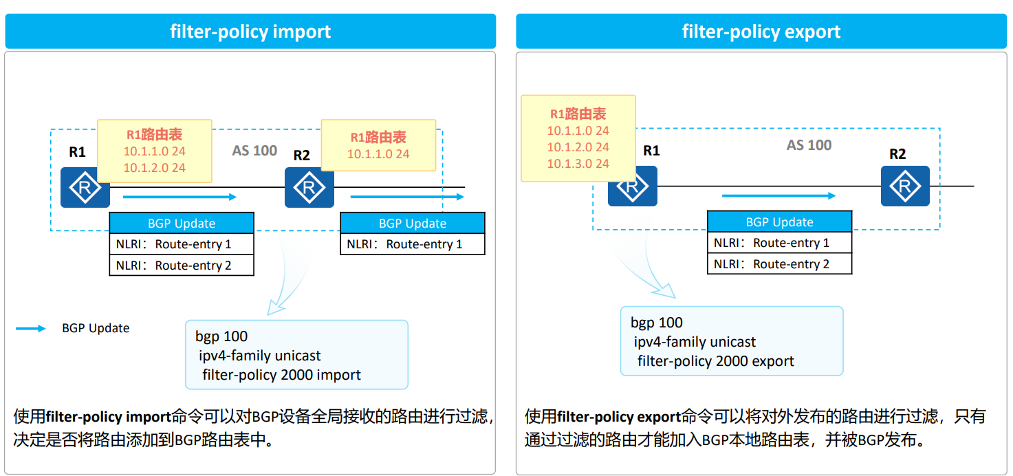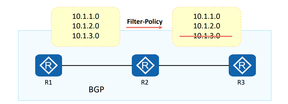 [Huawei-bgp-af-ipv4] filter-policy { acl-number | acl-name acl-name | ip-prefix ip-prefix-name } import