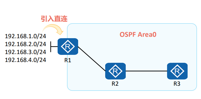R1、R2、R3运行OSPF,R1将直连网段192.168.1.0/24引入OSPF。