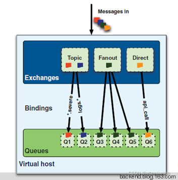 “exchange”接收发布应用程序发送的消息,并根据一定的规则将这些消息路由到“消息队列”。