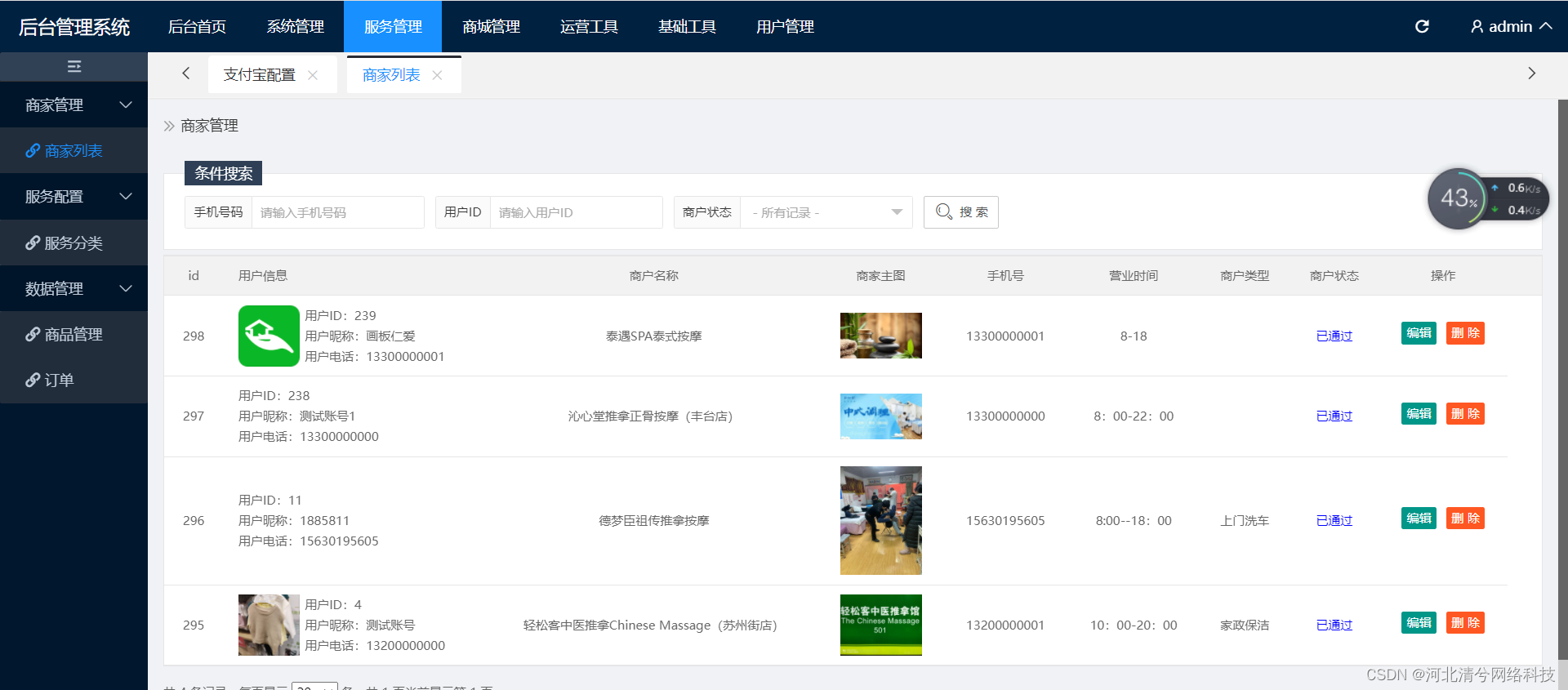 - 商家端功能:商家可以发布、编辑、上架、下架和删除服务内容,接收并回复用户消息,查看余额明细和提现,以及编辑商家基础信息等。