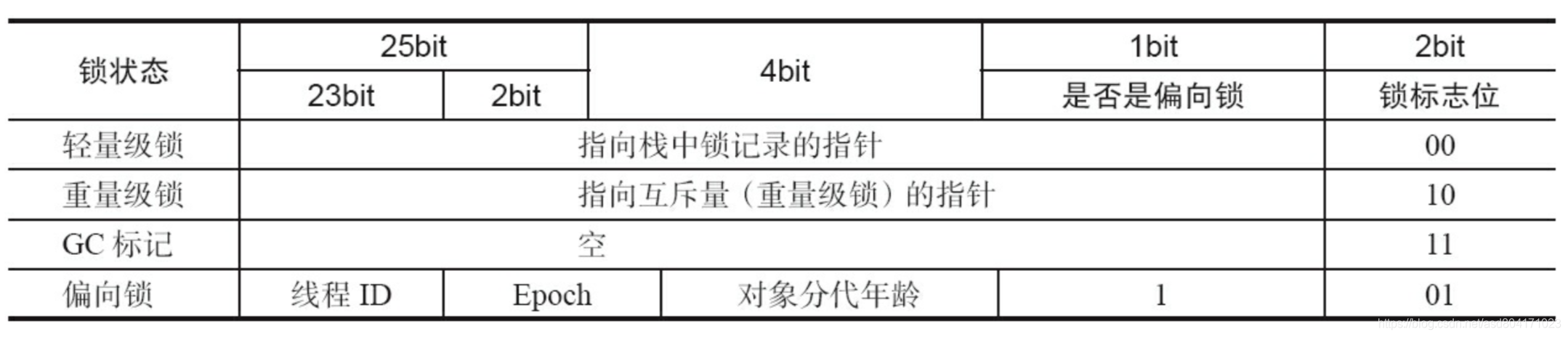 mark word 在32位虚拟机的组成,mark word在32位虚拟机的长度是32bit 在64位虚拟机是64bit