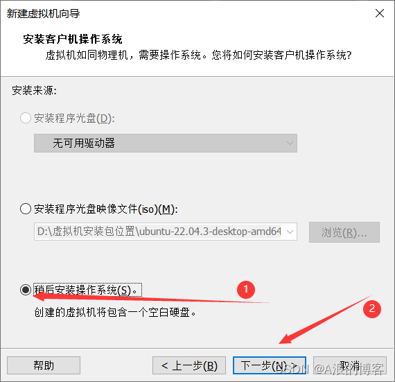 9.3、安装磁盘镜像,根据图示来就好,记住镜像文件是我们第一步的时候下载的;