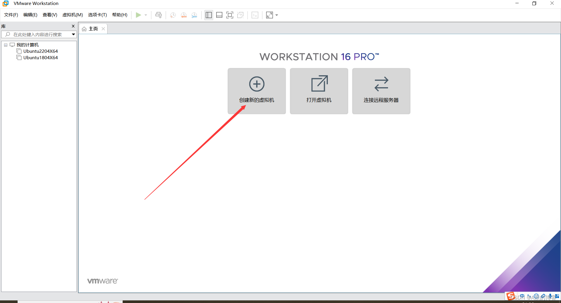 1、打开VMware,点击创建新的虚拟机(或者点击文件选择新建虚拟机):