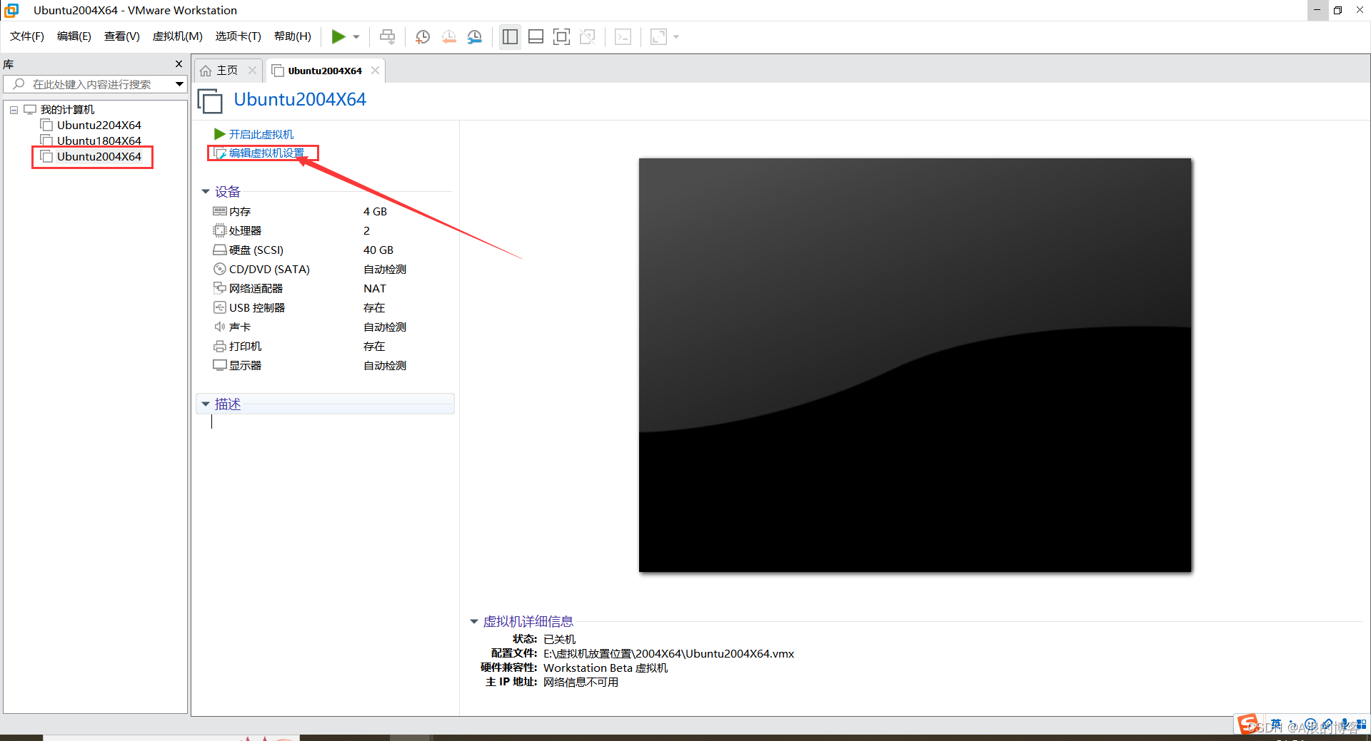 8、这时候VMware虚拟机库里面会出现我们刚刚安装的虚拟机,点击“编辑虚拟机设置”,进行一些自定义硬件设置:
