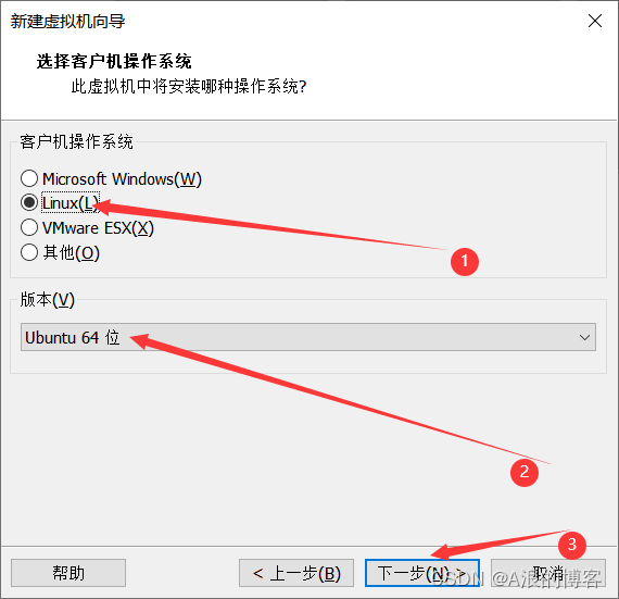 4、默认选择Linux系统,Ubuntu64位,下一步: