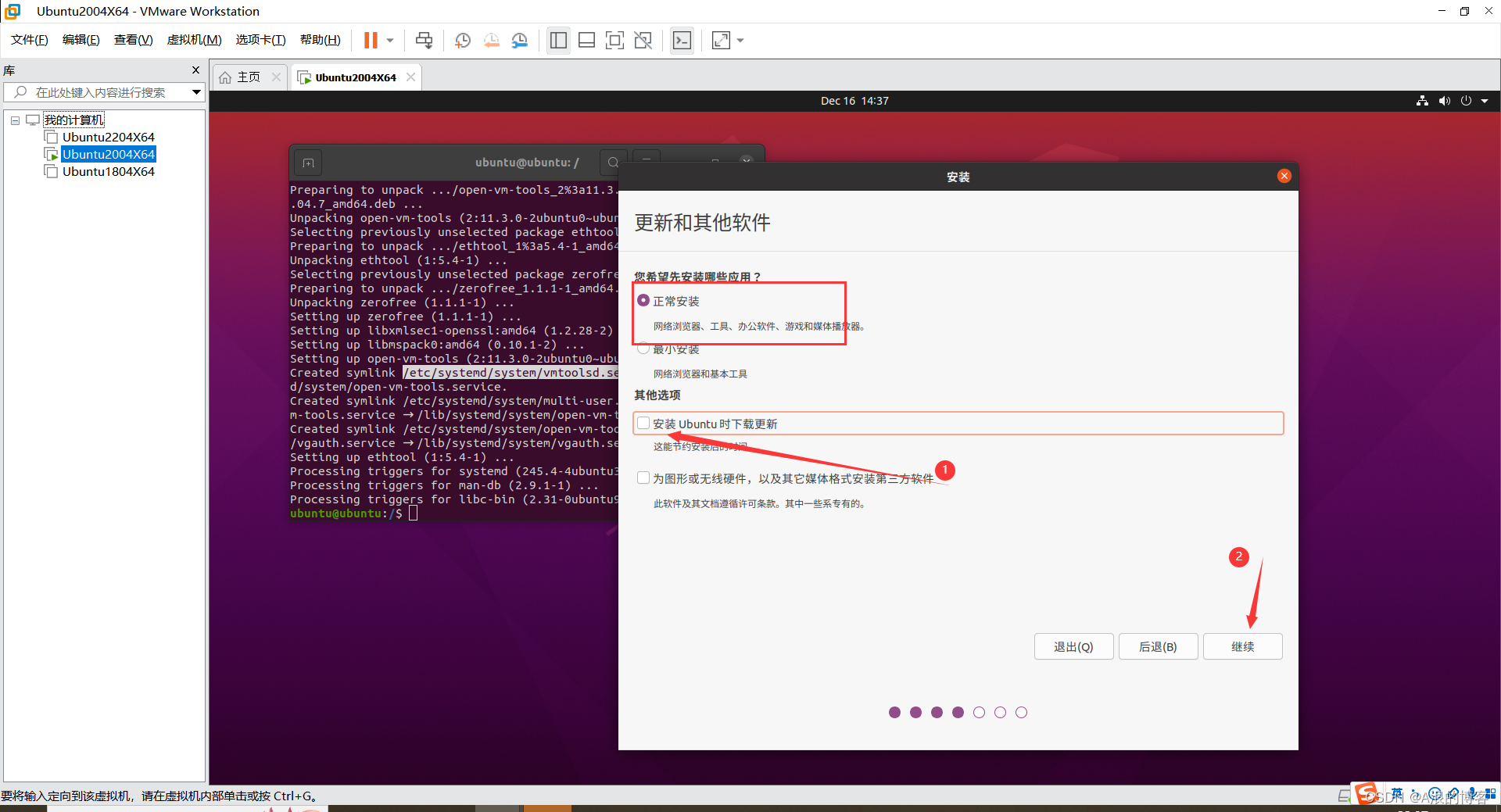 12、应用默认正常安装,其他选项取消安装时更新,然后点击继续: