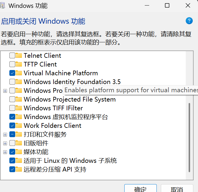 # 启用虚拟机平台功能