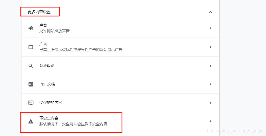 2.网站设置==》更多内容设置==》不安全内容