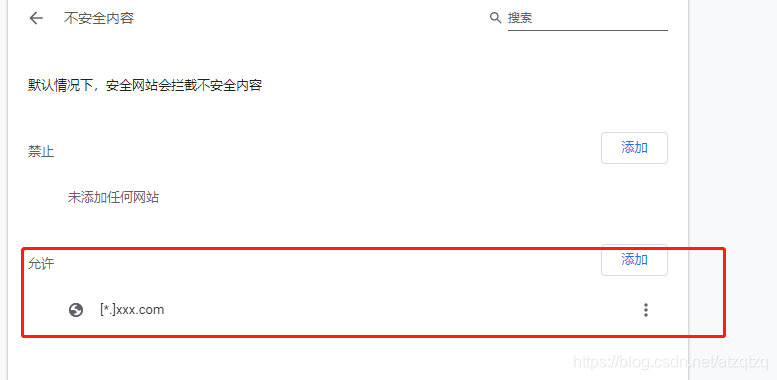 3.不安全内容==》允许:填写不过滤的网站,格式“[.*]xxx.com” ,如 “[.*]baidu.com”