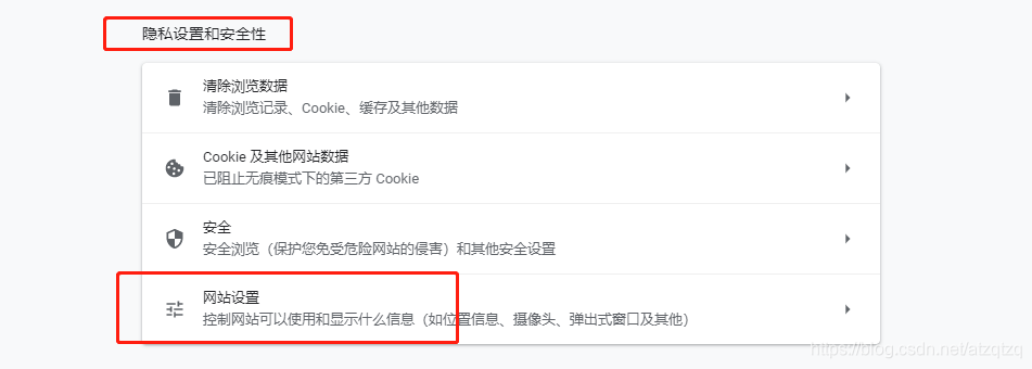 1.设置==》隐私设置和安全性==》网站设置