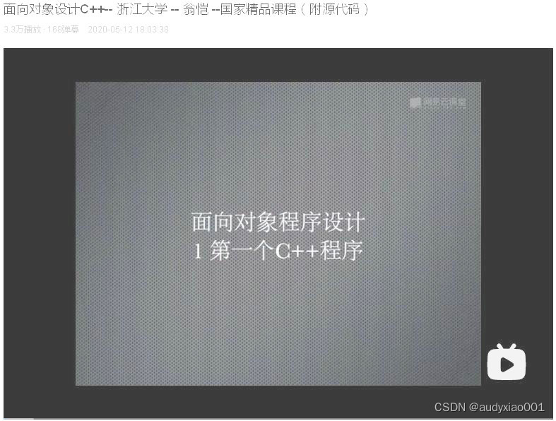 课程 39 浙江大学翁恺老师的《面向对象设计C++》中文课程,网址为:https://www.bilibili.com/video/BV1yQ4y1A7ts