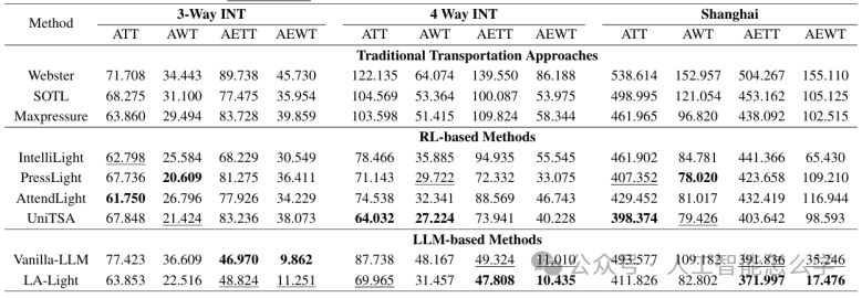 总体而言,LA-Light框架通过利用LLM强大的推理和决策能力,结合传统交通信号控制方法和实时数据收集工具,实现了显著的性能提升。实验结果展示了LA-Light在处理紧急事件、应对突发交通状况以及传感器数据缺失情况下的强大适应能力和稳定性。