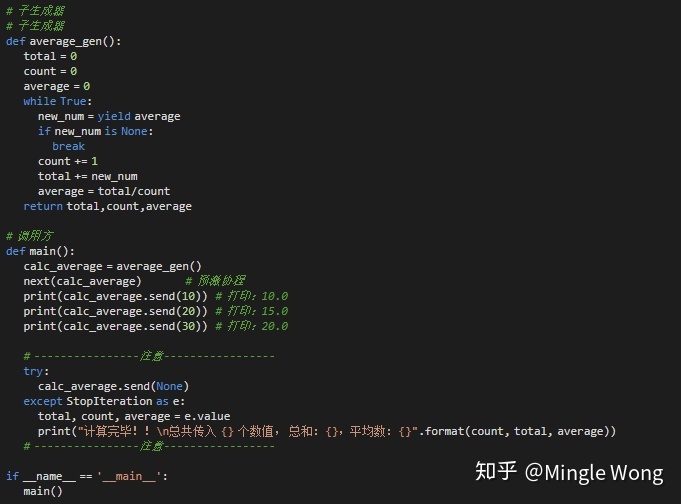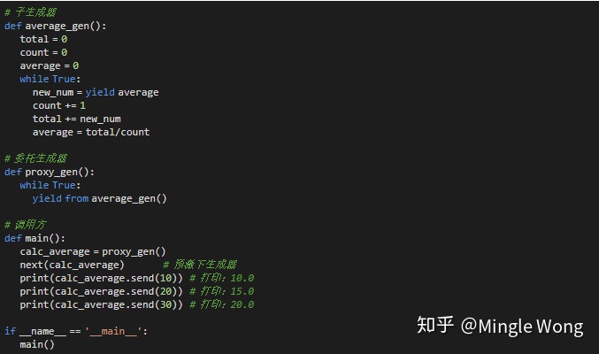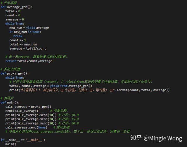 认真阅读以上代码,你应该很容易能理解,调用方、委托生成器、子生成器之间的关系。我就不多说了