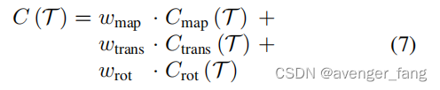 其次,Cartographer的实现使用额外的平移和旋转成本函数来惩罚最终解T与初始猜测的偏差,这通常是通过基于车轮里程计的外推得到的。