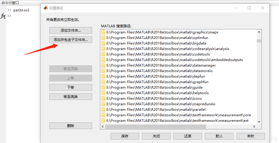 3.接下来打开matlab,将rvctool文件夹和子文件夹添加进路径。在命令栏输入 pathtool