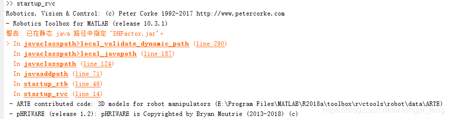 4.路径添加完毕安装成功,使用startup_rvc开始robot toolbox