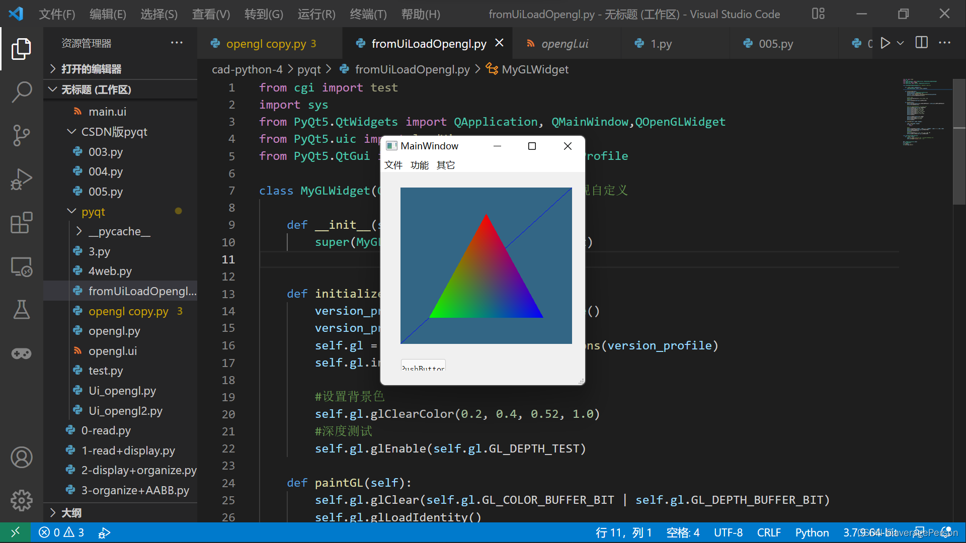 0基础小白关于如何在pyqt5的ui窗口中内嵌一个OpenGL窗口的方法的若干摸索。
