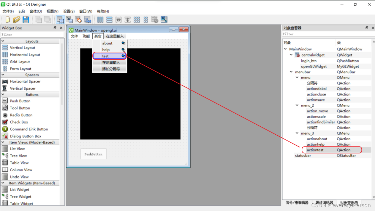 第一,画ui,画窗口。窗口的选项,对应QAction类的一个对象。