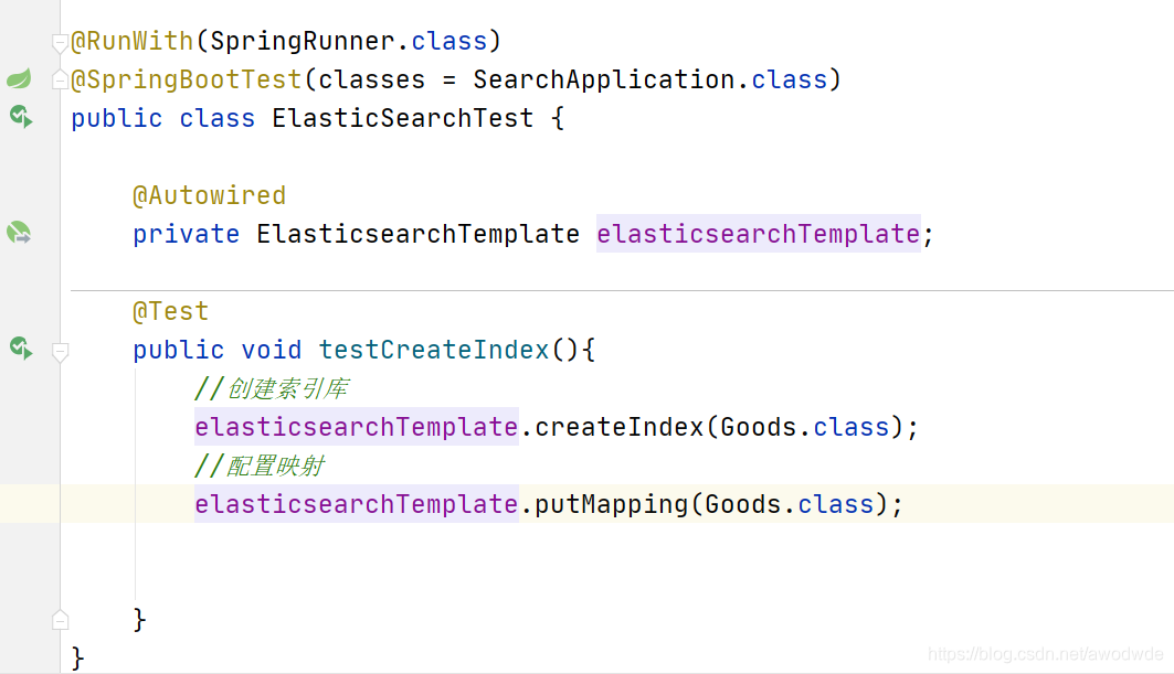 我们只需要导入一次数据就行,所以在测试类中编写测试代码