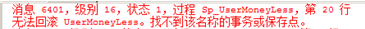 EXEC Sp_UserMoneyLess @UserName,@orderMoney,1,@Result OUTPUT,@Msg OUTPUT
