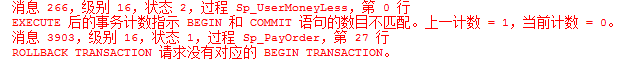 为什么又出现了这个错误呢?从这个错误我们可以分析出错误的原因是在外部的事务中回滚事务的时候没有找到对应的Begin Tran,可我们的代码中明明有 Begin Tran PayOrder啊,为什么还会出现这个错误呢?在此我找到了微软的解释: