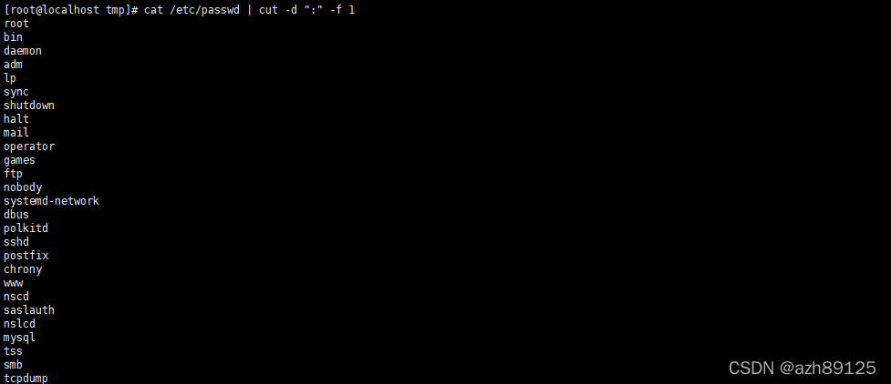 cat /etc/passwd | cut -d ":" -f 1