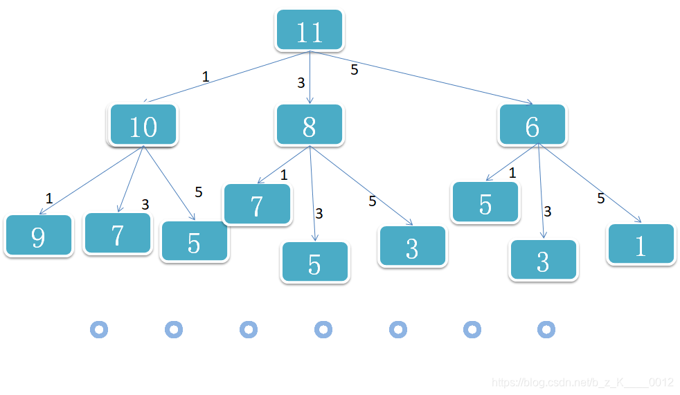 将 coins = [1, 2, 5], amount = 11模拟,即如图