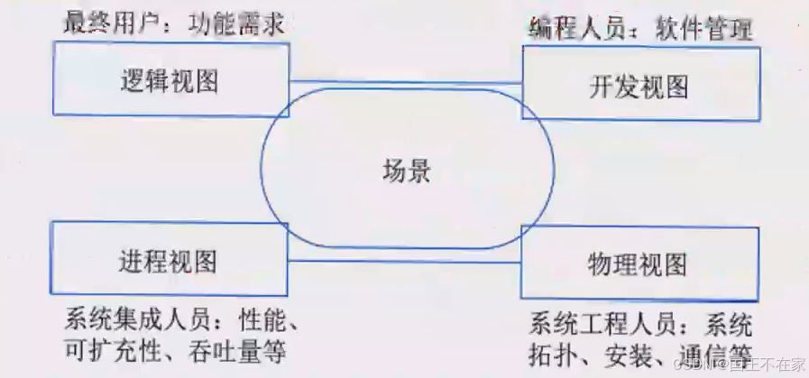 - 高级阶段:描述系统的高层抽象结构为中心,不关心具体的建模细节,划分了架构模型与传统结构的界限。以4+1模型为标志。