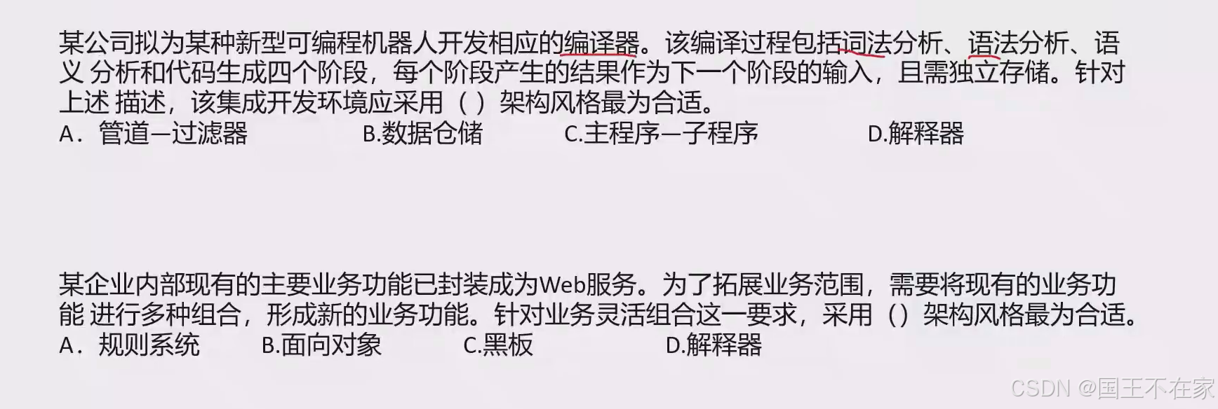 1、简述软件架构在需求分析和设计之间起到的桥梁作用。