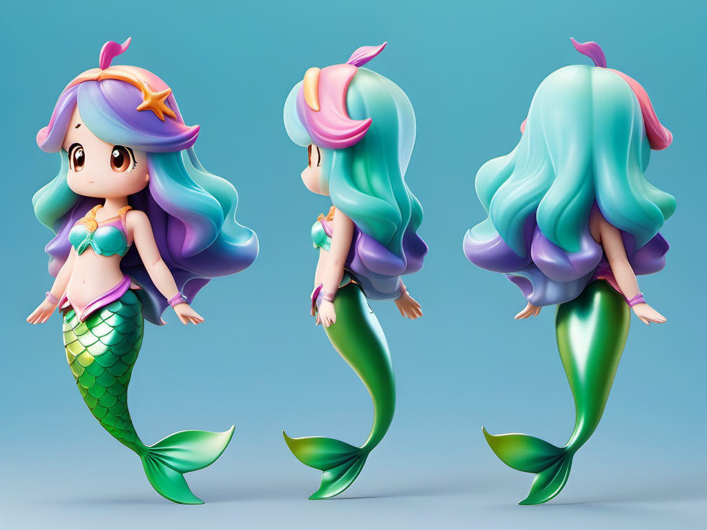 Prompt:mw_sanshitu,full body,mermaid,simple background,standing,lora:mw\_3d角色ip三视图q版\_2.0.1:0.9\