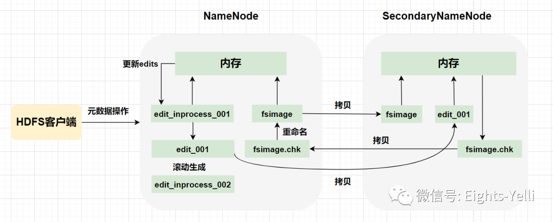 2NN加载获得的edits和fsimage,进行合并操作,生成fsimage.chk文件