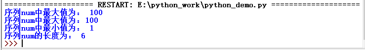 print("序列num中最大值为:"+str(max(num))) #输出方式的两种写法
