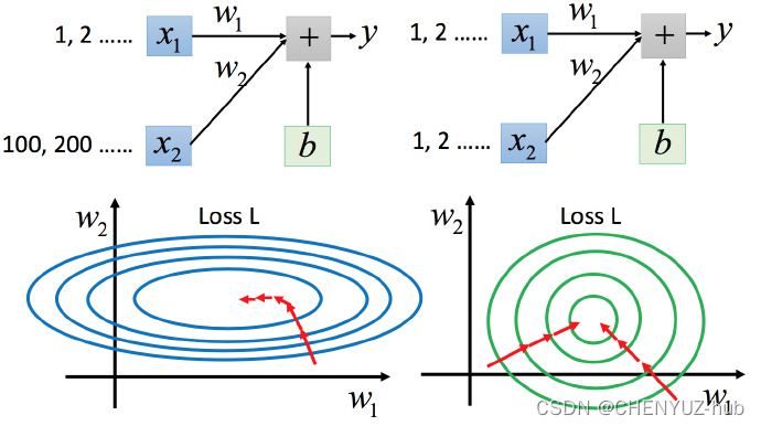 将多个参数缩放到相似区间,保证在进行梯度下降参数更新时,loss对多个参数的敏感程度相近(不会差很大),可以使用同一个学习率进行学习。