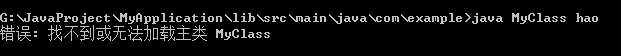 (4)开始的时候一直报错,.class文件也已经生成了,但是还是报错说“找不到或无法加载主类MyClass”,最后发现是要把程序中的package删除掉才可以,此时重新运行javac MyClass.java 与java MyClass hao即可。