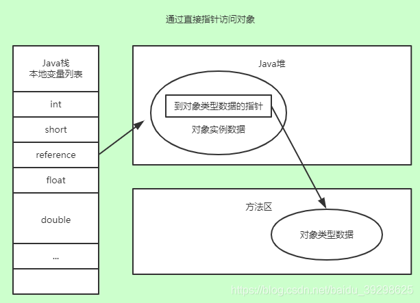 使用直接指针访问,Java堆对象的布局中就必须考虑如何放置访问类型数据的相关信息,而reference中存储的直接就是对象地址。