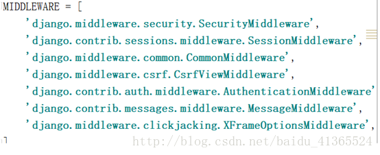 第二步:在pydlogsys/sittings.py MIDDLEWARE 要有中间键'django.contrib.sessions.middleware.SessionMiddleware'