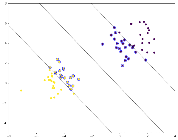 和一般模型都一样,训练用的fit(),评分的score(),预测新样本的predict(),还有计算样本点到分离超平面的距离的decision_function()等等。