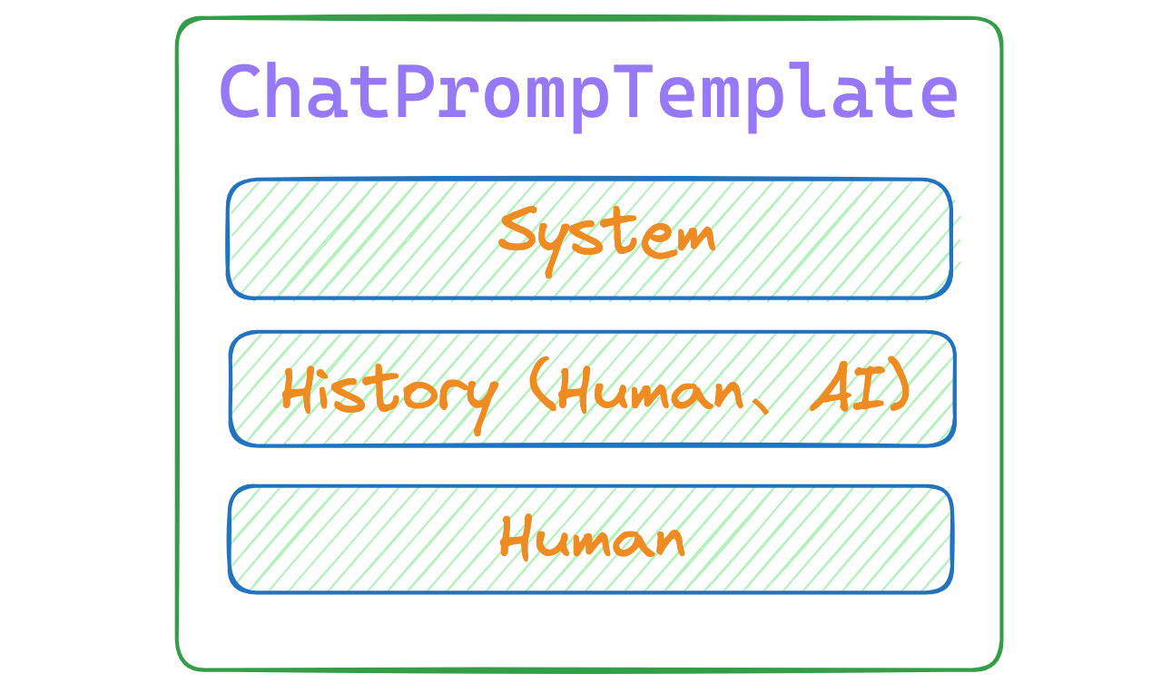 ChatPromptTemplate主要用于聊天场景。ChatPromptTemplate有多角色,第一个是System角色,后续的是Human与AI角色。因为需要有记忆,所以之前的历史消息要放在最新问题的上方。