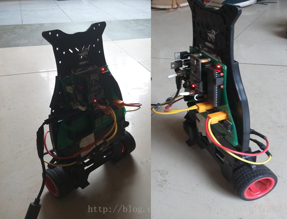 3、PID控制器参数调整:以上两步确定调到最佳状态,然后直接上机,上电看看提起来左右晃动看电机的反应是否正确,一般会有某个电机反转的情况,修改电机接线(推荐)或者修改程序,修改PWM输出引脚等等,然后根据PID调整原则,修改PD参数,使之能够站稳,然后可以考虑注释掉程序中的DEBUG段 这样可以减少控制周期,是直立控制更加稳定,但是这时周期改变了,需要修改积分时间,改小来,这时因为没有了DEBUG函数,只能盲调,但是这时PD的参数已经调好了,就只用调整积分时间这一个变量,因此只会越调越稳,不用担心盲调会调不好或者不好调等问题。