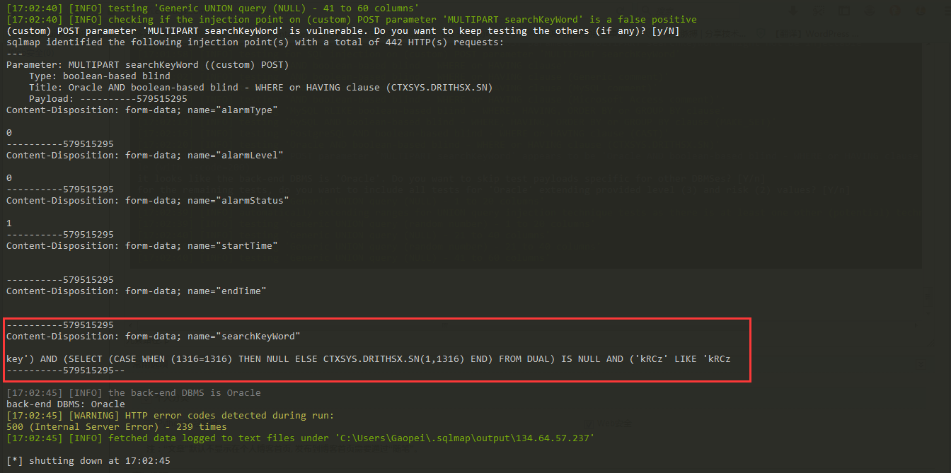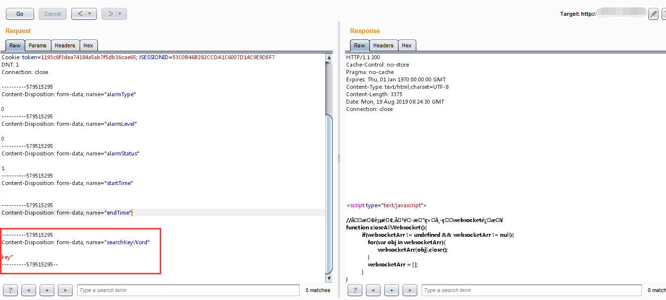 对参数searchKeyWord测试发现,目标应用程序有WAF防护: