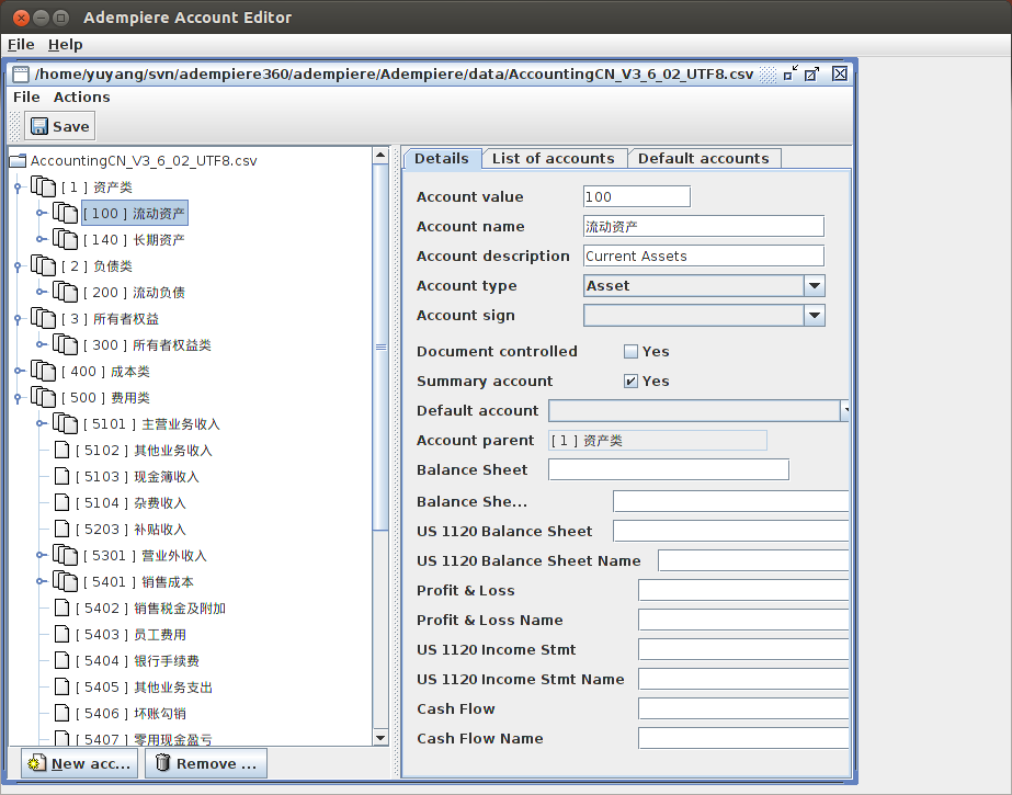 Adempiere会计科目导入