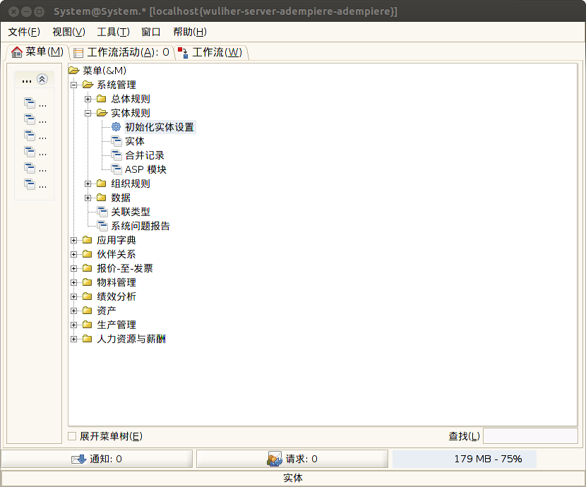 首先,使用System登陆系统后,点击初始化实体设置菜单