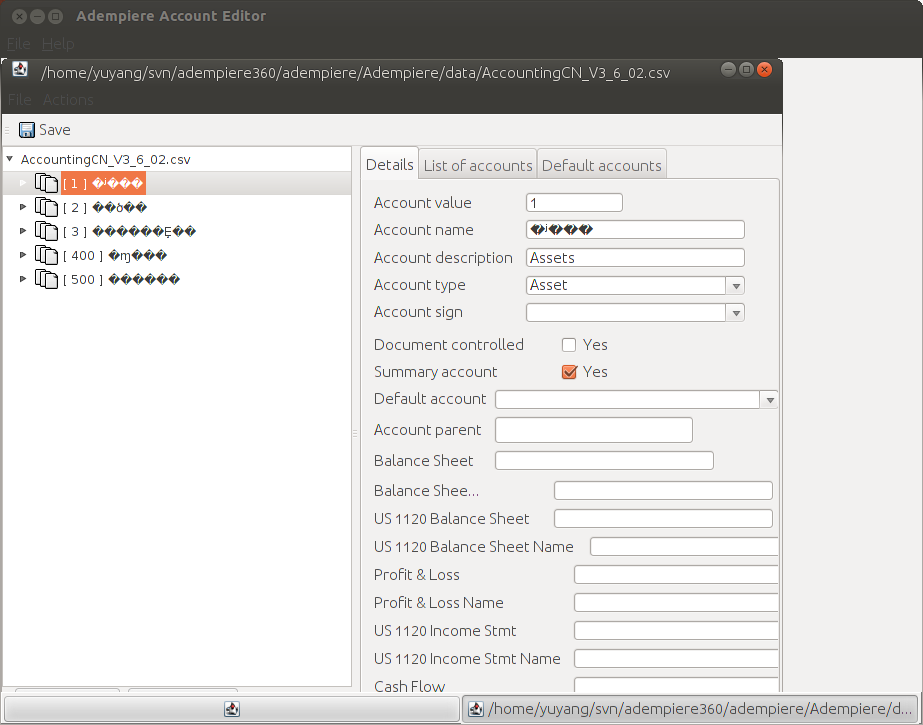 通过第三方软件查看AccountingCN_V3_6_02.csv的编码格式,发现居然不是UTF-8。通过转换后再次用该工具打开,问题解决。
