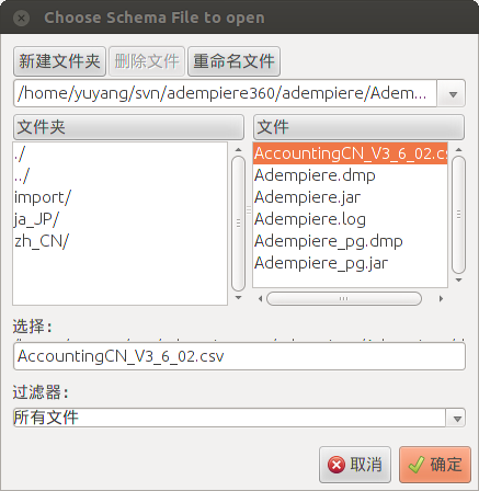 把下载文件AccountingCN_V3_6_02.csv的保存至$ADEMPEIRE_HOME/data