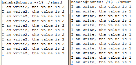2.实现非亲缘关系的通信。(两个进程对共享内存的值进行修改)