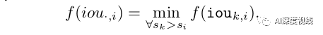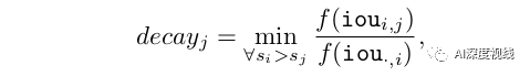 Matrix NMS源自SoftNMS。随着递减函数f(iou),Soft-NMS通过递归地根据IoU降低其他检测分数,分数较高的IoU检测结果被降低分数后将被以很小的阈值消除。但是,此过程像传统的Greedy NMS一样是顺序的,无法并行实现。